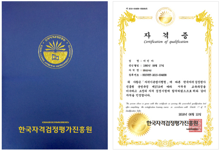 시험 합격 후 자격증 발급 희망 시 발급비만 납부 (9만원)